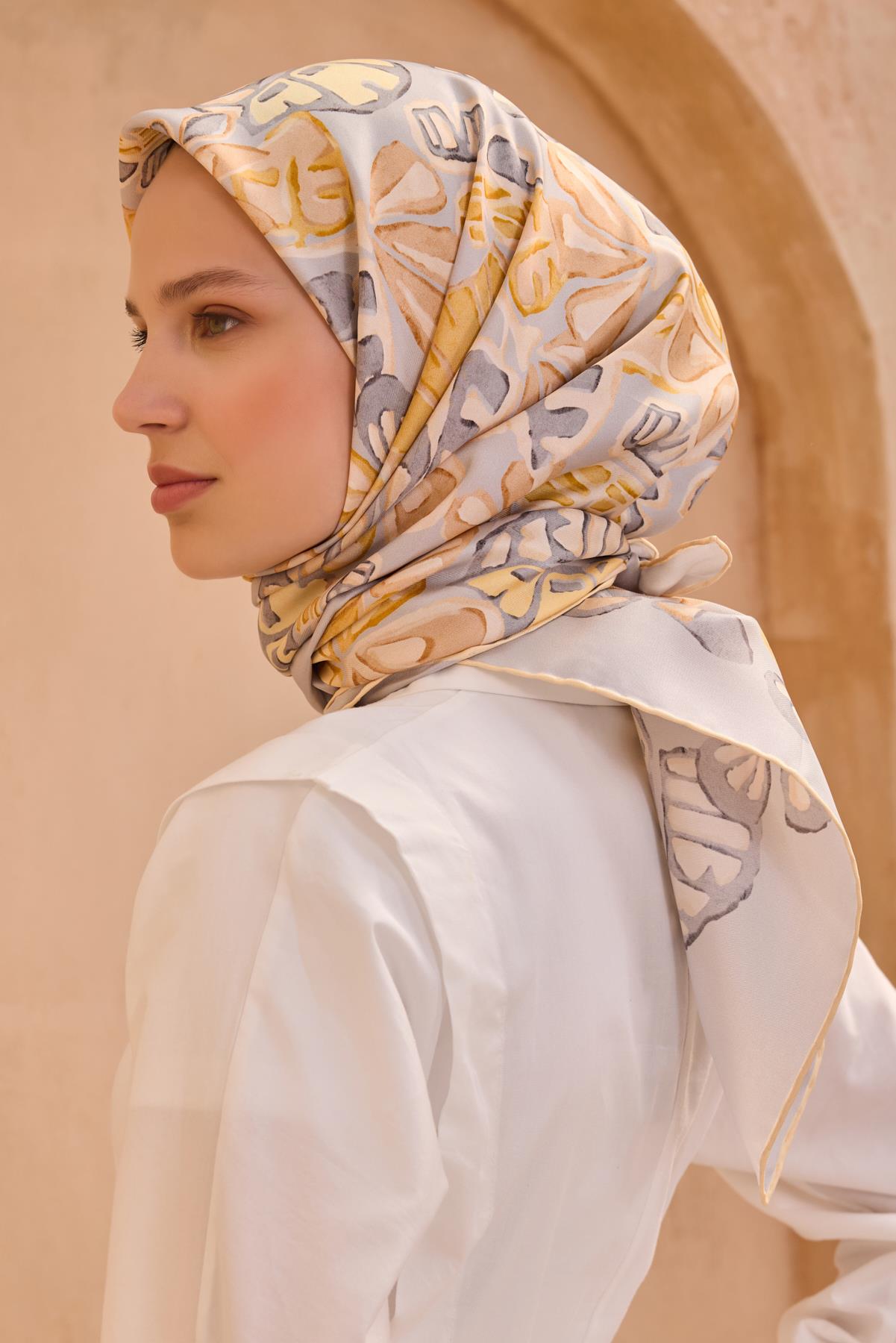 Belli Tivil Saf İpek Eşarp 4114- 85 Gri Karışık Desen