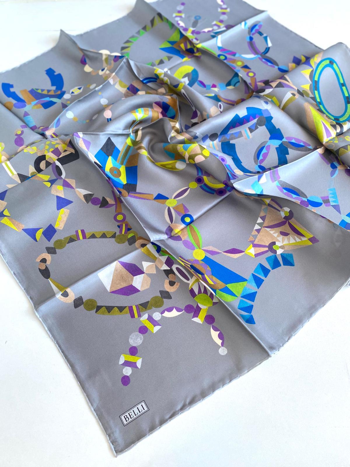 Belli Tivil Saf İpek Eşarp 4036 – 83 Gri Karışık Desen