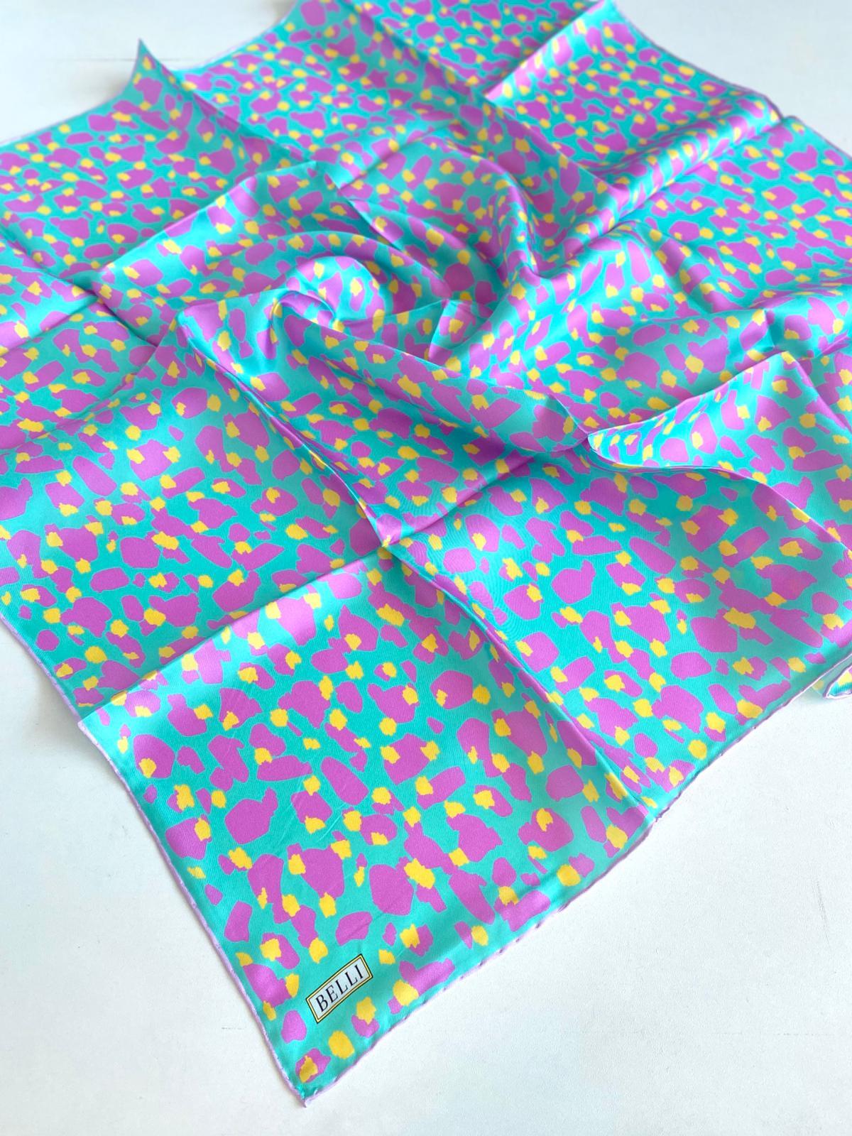 Belli Tivil Saf İpek Eşarp 4042-84 Mint Yeşili Karışık Desen