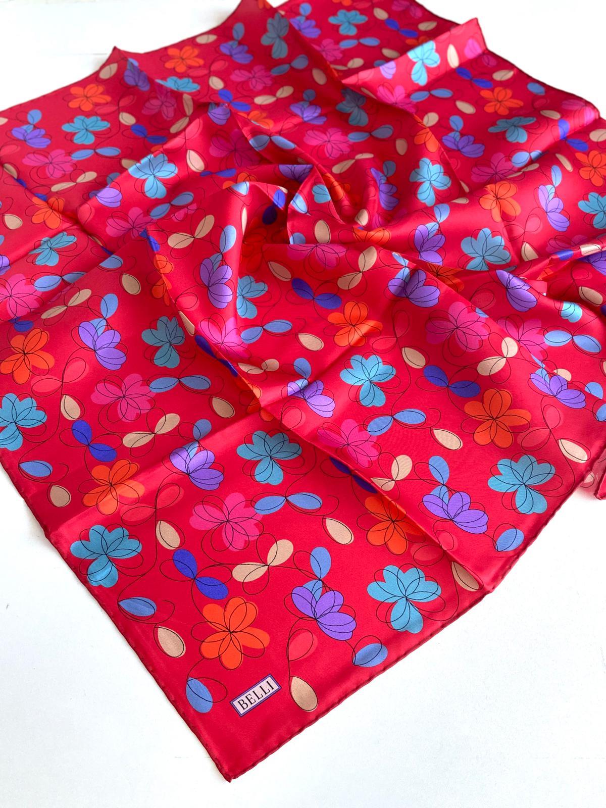 Belli Tivil Saf İpek Eşarp 4045 – 87 Kırmızı Karışık Desen