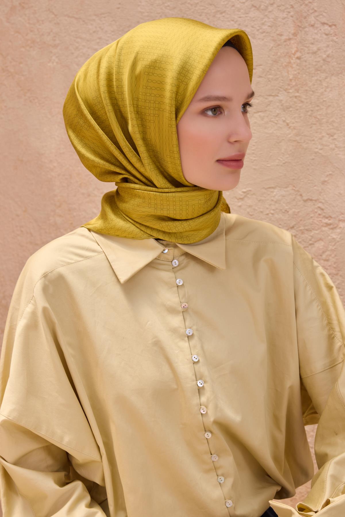 Lawilia Yeşil Gri Geometrik Desen Tivil İpek Eşarp 29027 – 38