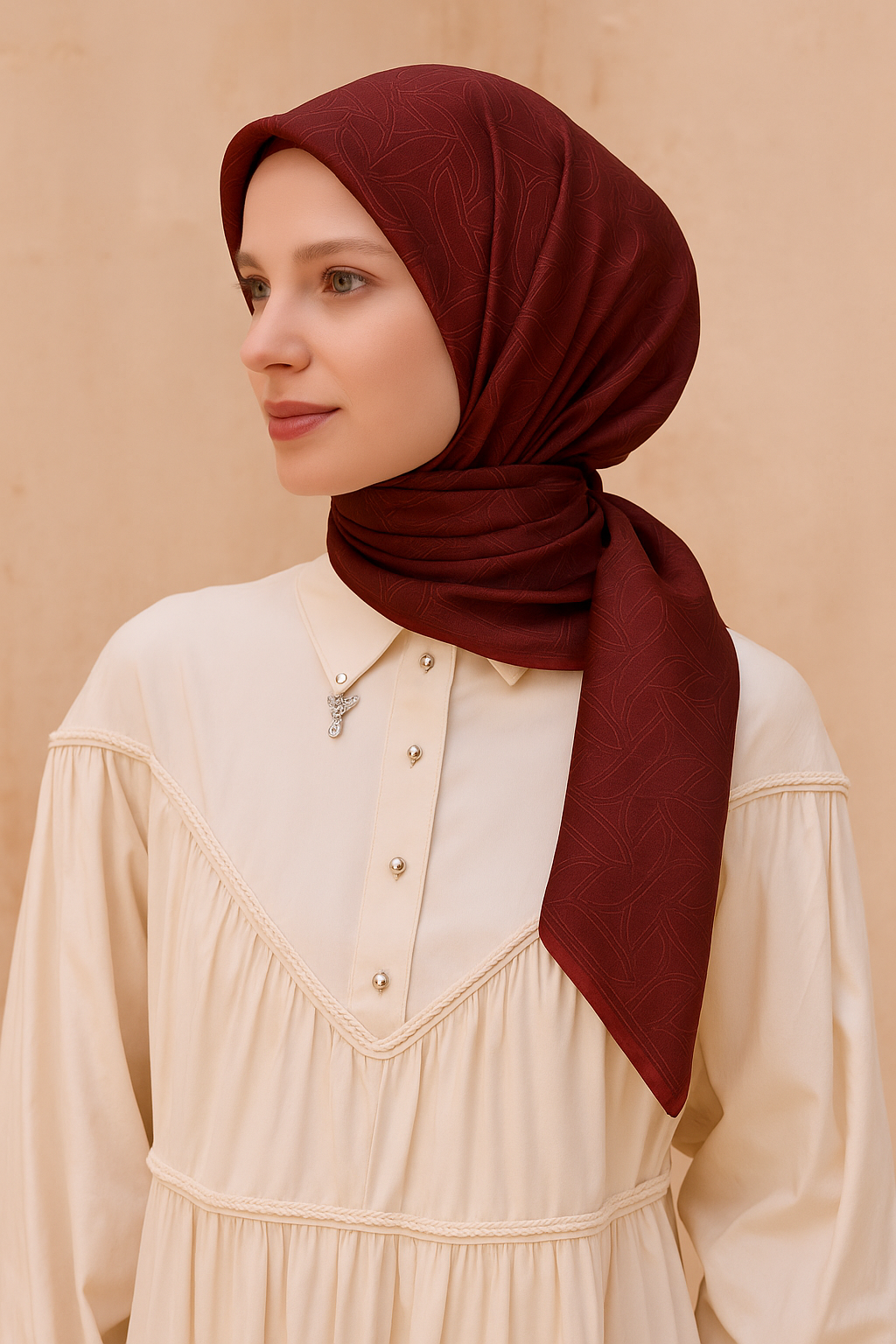 Belli Tivil Saf İpek Eşarp 4221 – 03 Bordo Soyut Desen