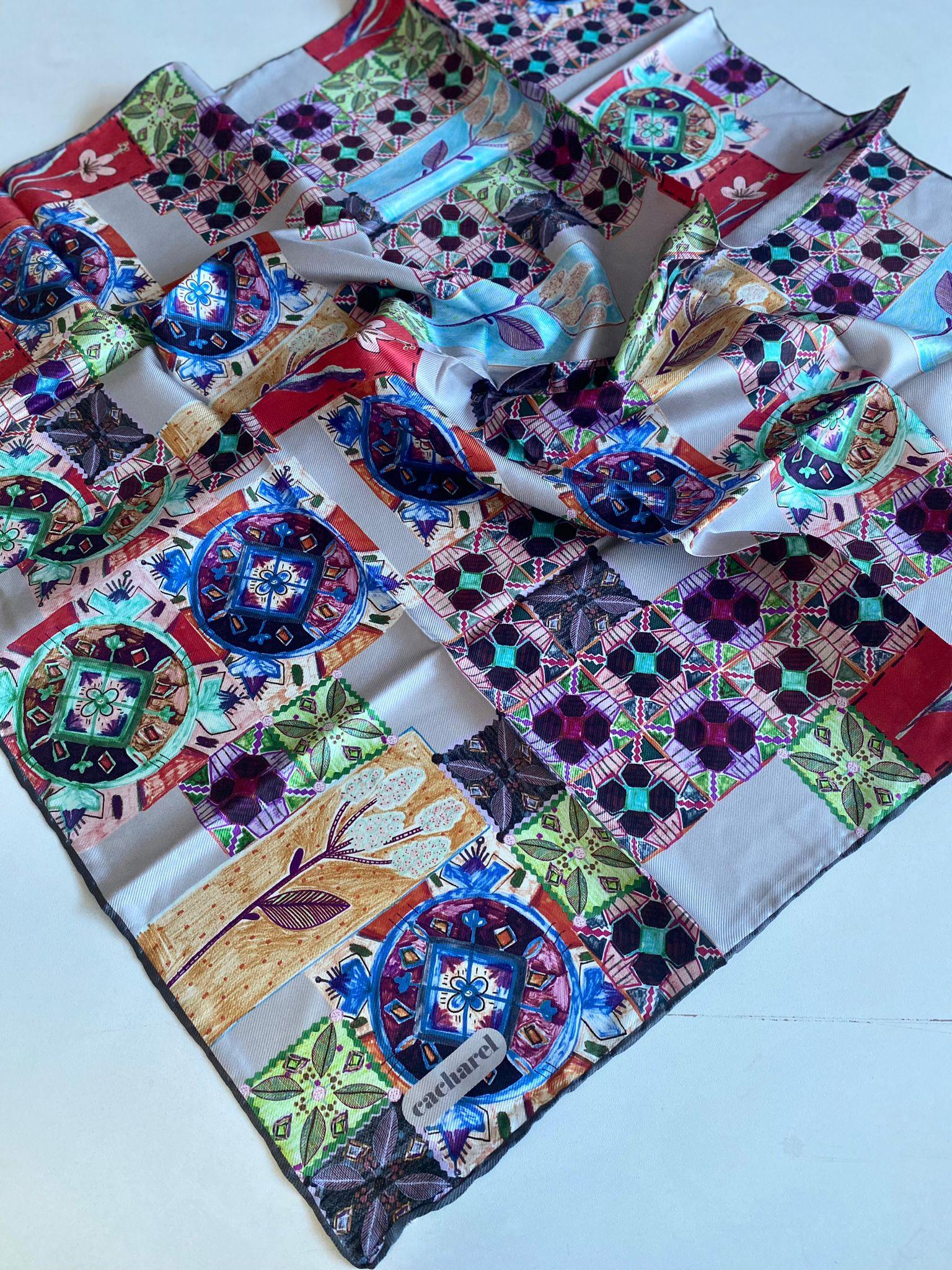 Cacharel Defolu Tivil İpek Eşarp 41898 Gri Karışık Desen