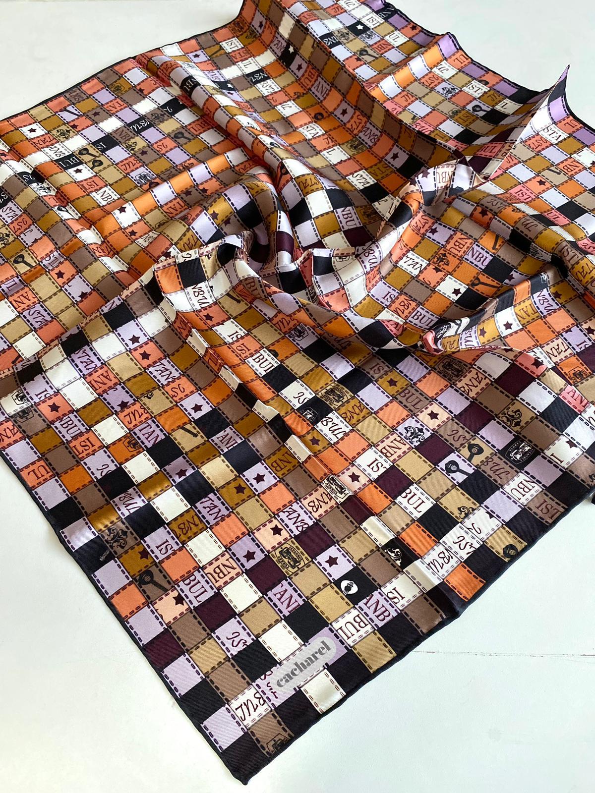 Cacharel Defolu Hardal Karma Desen Tivil İpek Eşarp 32101
