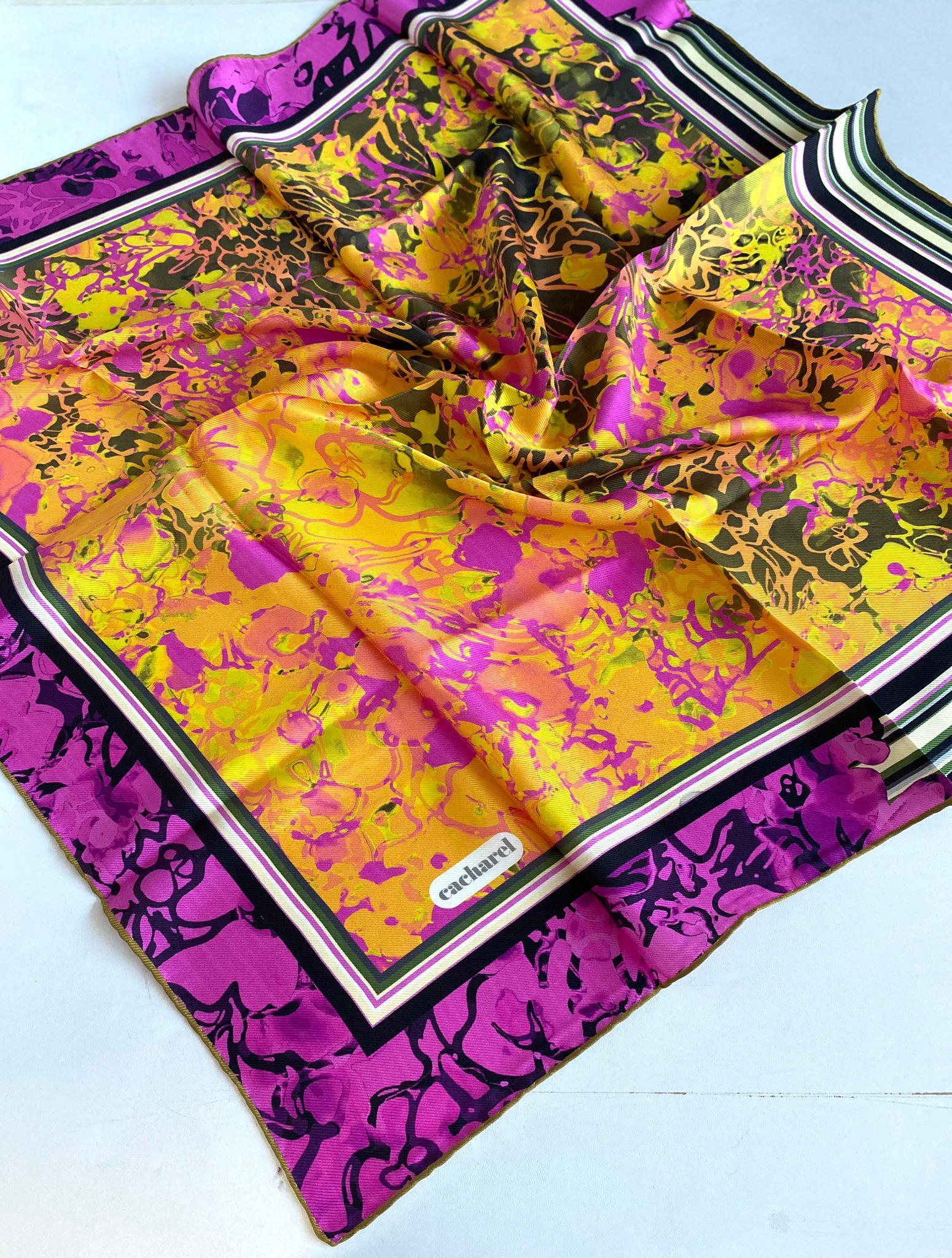 Cacharel Tivil İpek Eşarp 43566 Yağ Yeşil Karışık Desen