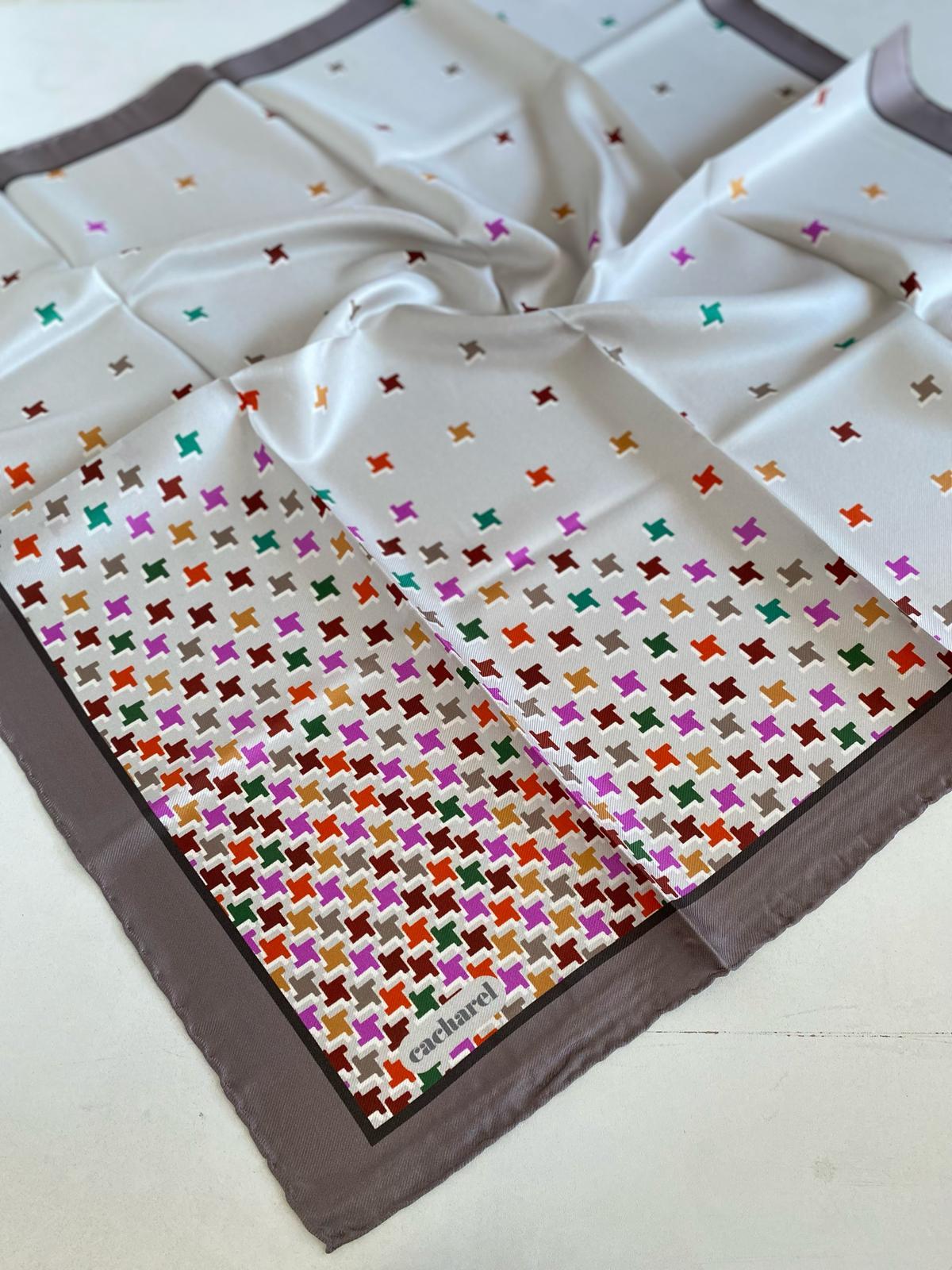 Cacharel Tivil İpek Eşarp 45912 Krem Karışık Desen
