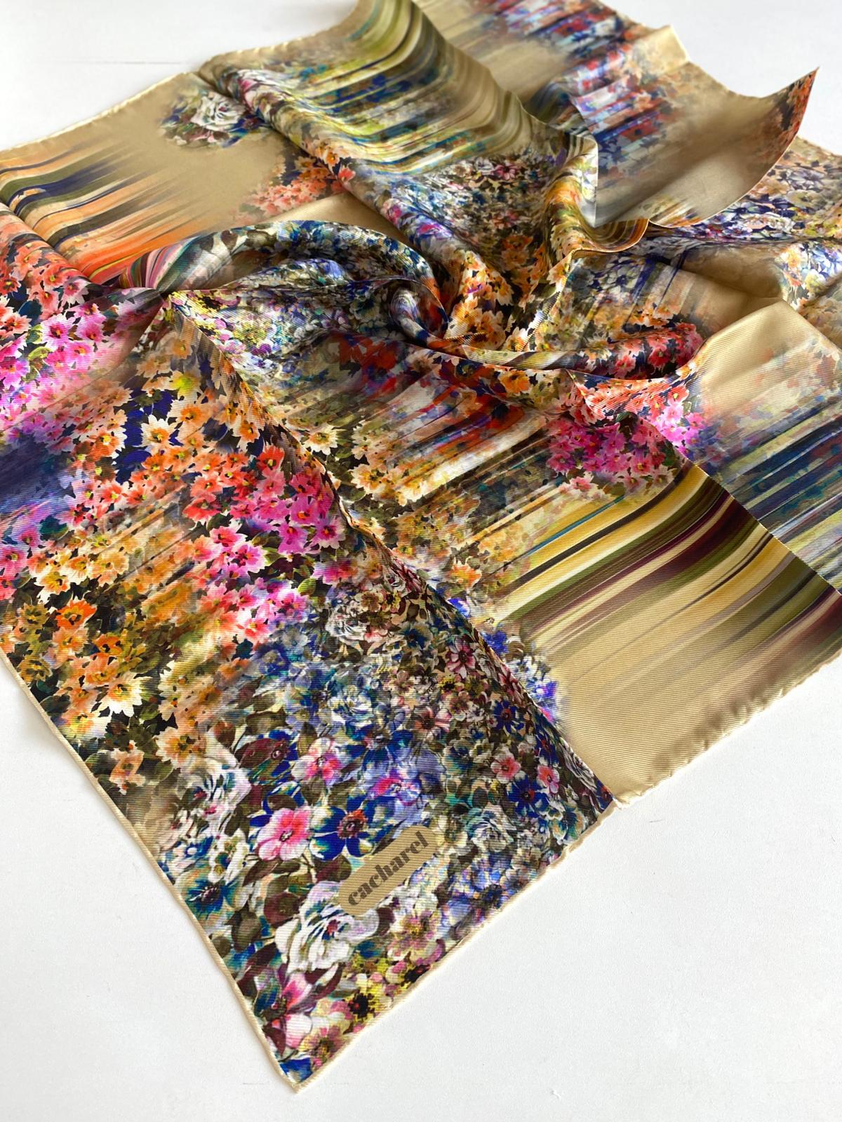 Cacharel Tivil Saf İpek Eşarp 4208701 – 311 – 49638 Mavi Karışık Desen
