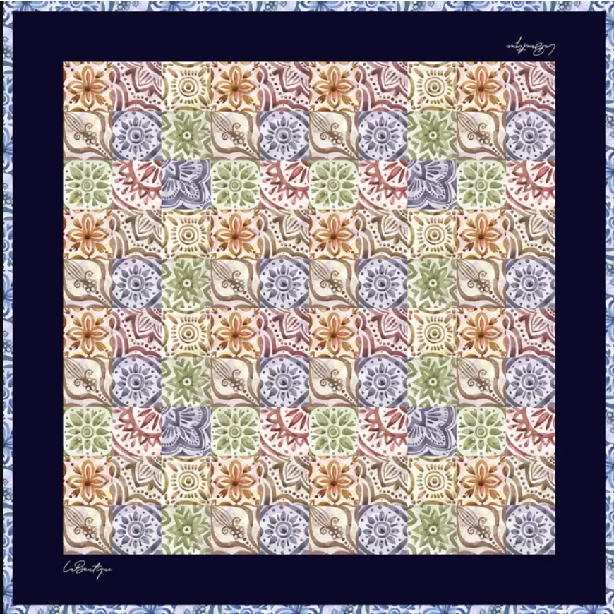 La Boutique Tivil İpek Eşarp 2105 – 06 Lacivert Karışık Desen