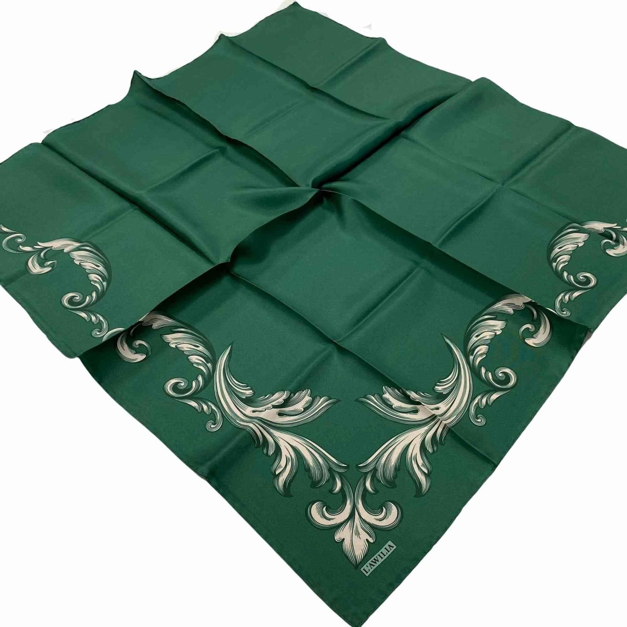 Lawilia Yeşil Vintage Çerçeveli Düz Renk Tivil İpek Eşarp 26432 – 01