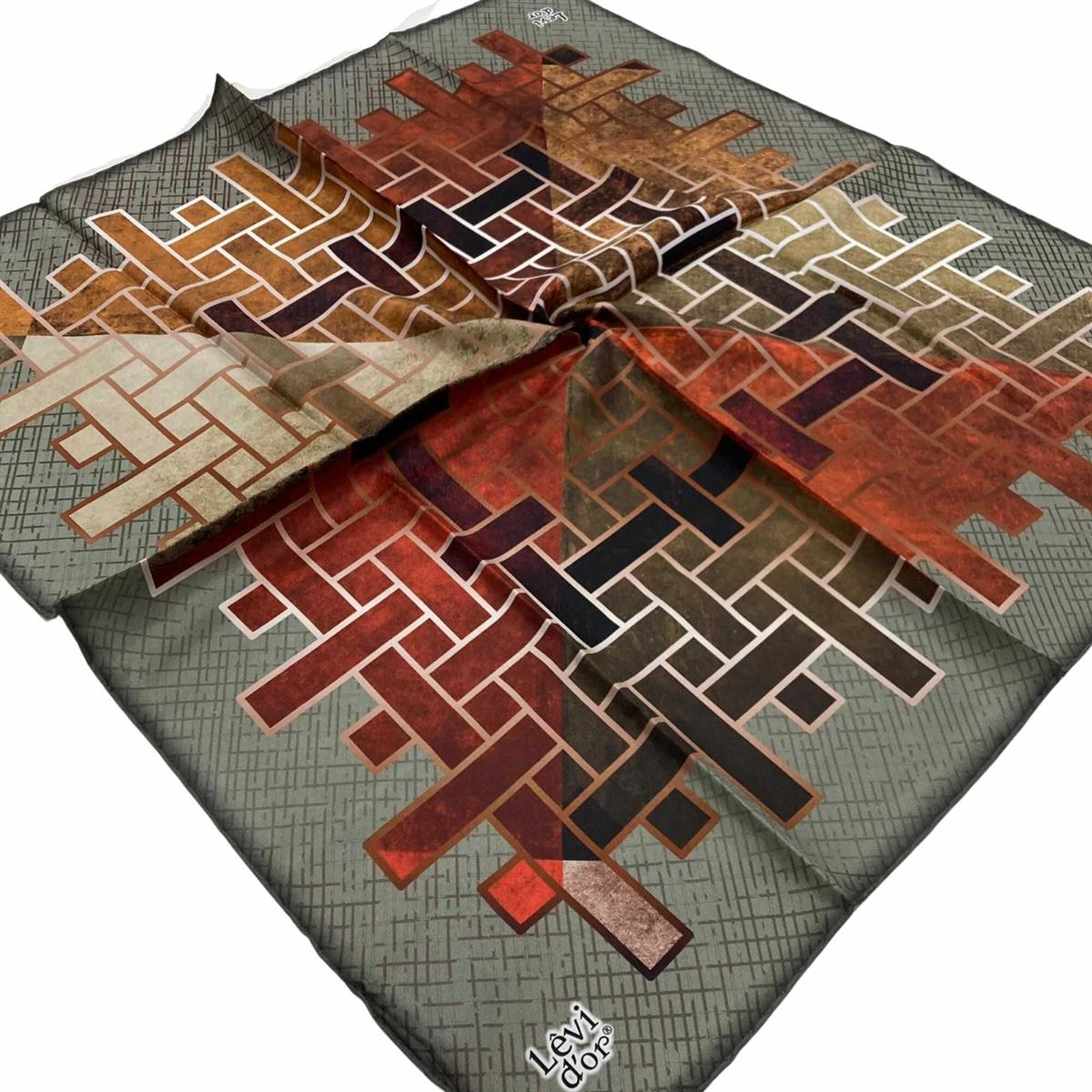 Lawilia Yeşil Gri Geometrik Desen Tivil İpek Eşarp 29027 – 38