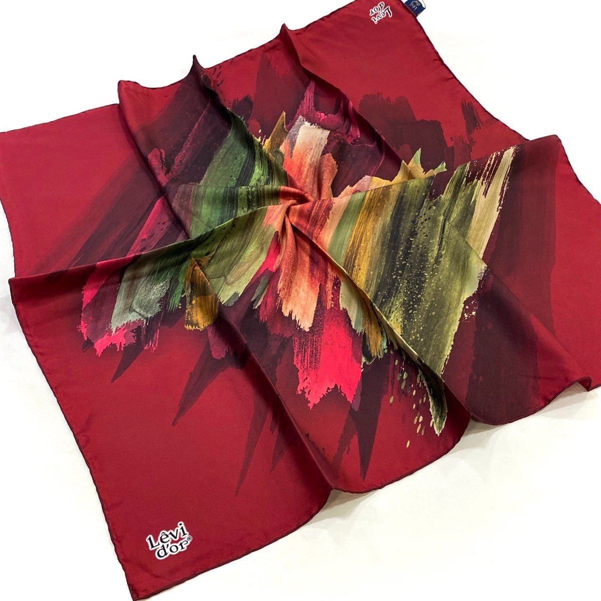 Levidor Kırmızı Desenli Tivil İpek Eşarp 19086