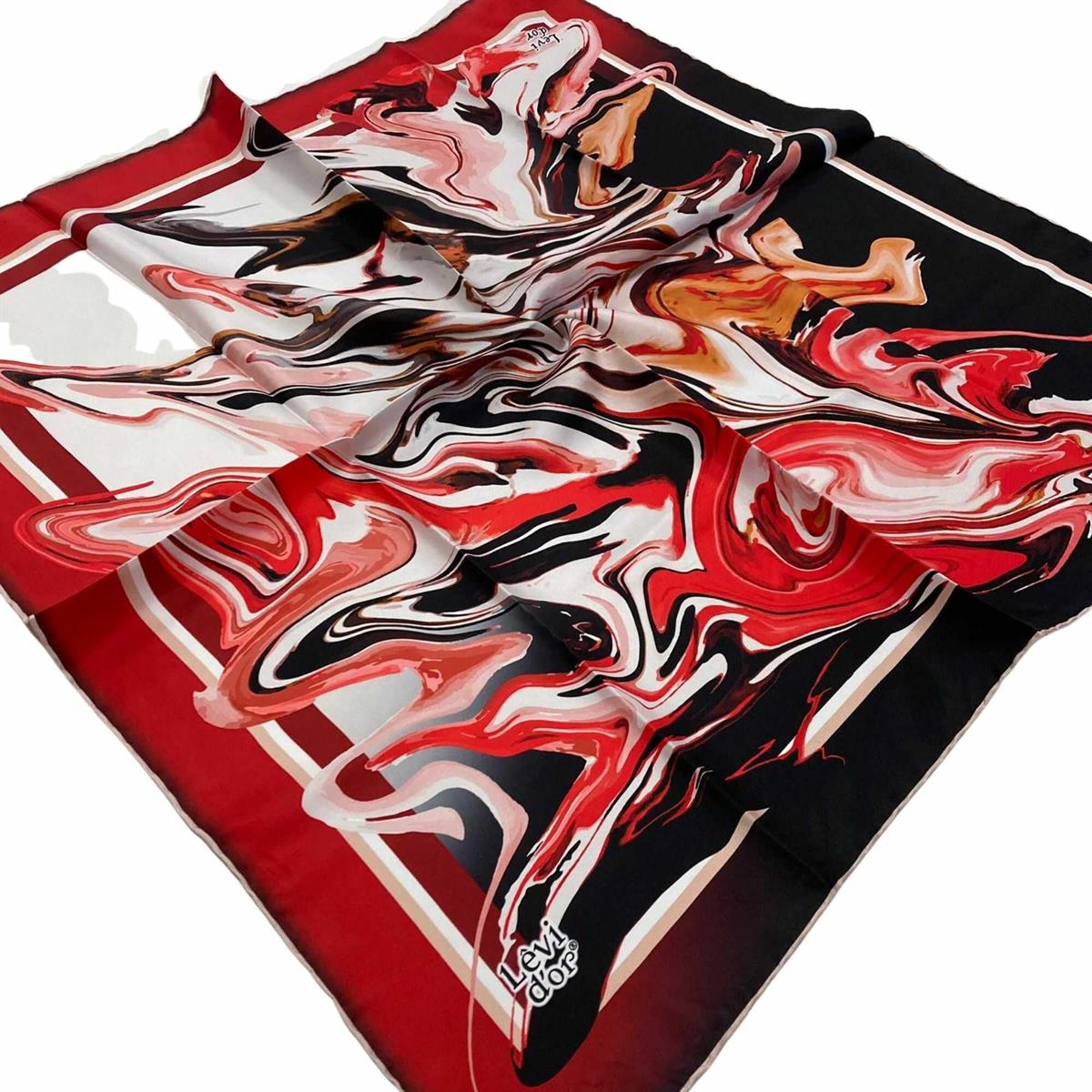 Levidor Tivil İpek Eşarp 35012 Kırmızı Karışık Desen