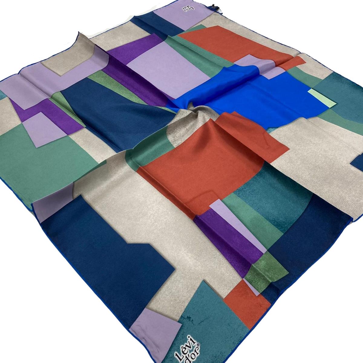 Levidor Mavi Desenli Tivil İpek Eşarp 21087