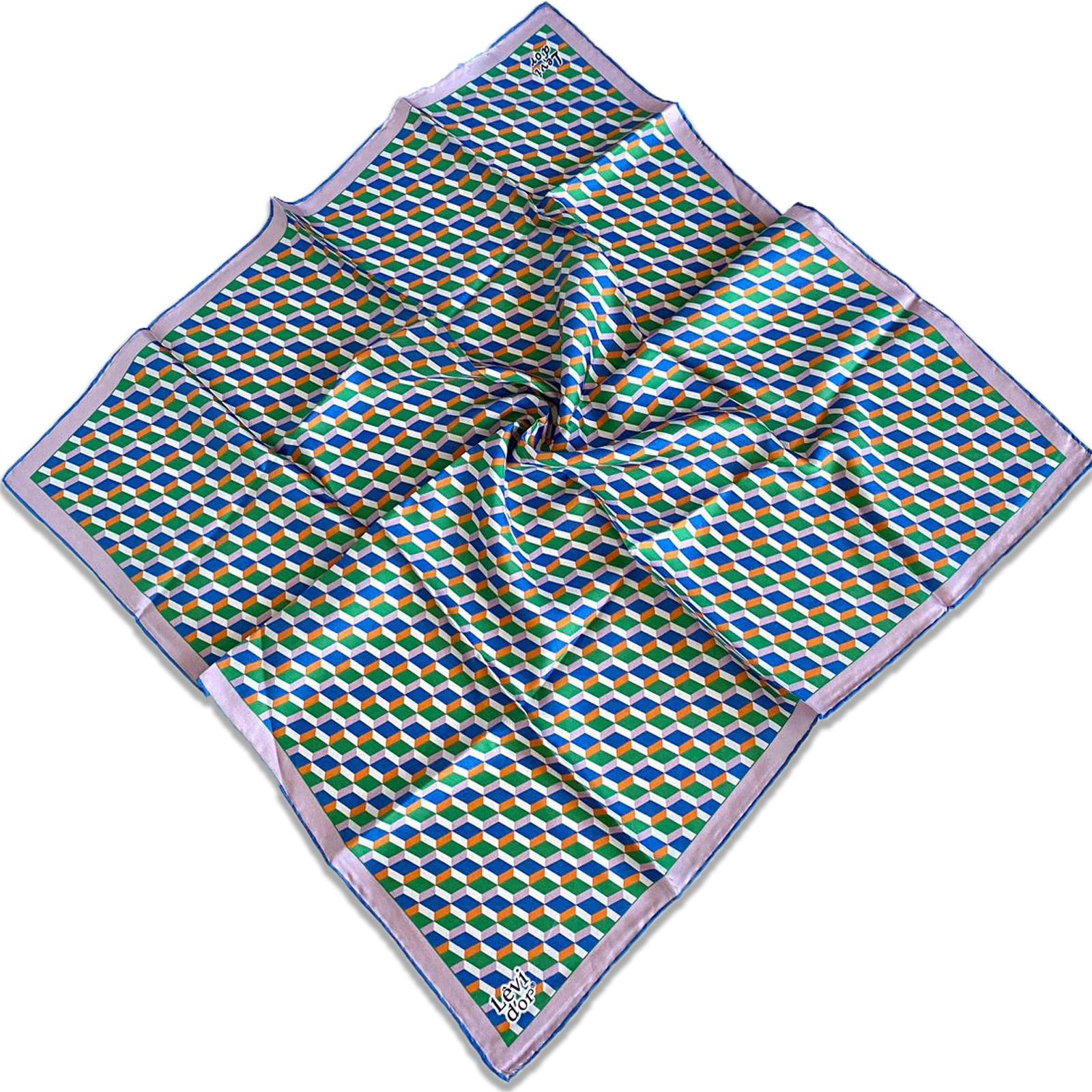 Lawilia Soft Yeşil Çizgili Geometrik Desen Tivil İpek Eşarp 29011 – 22