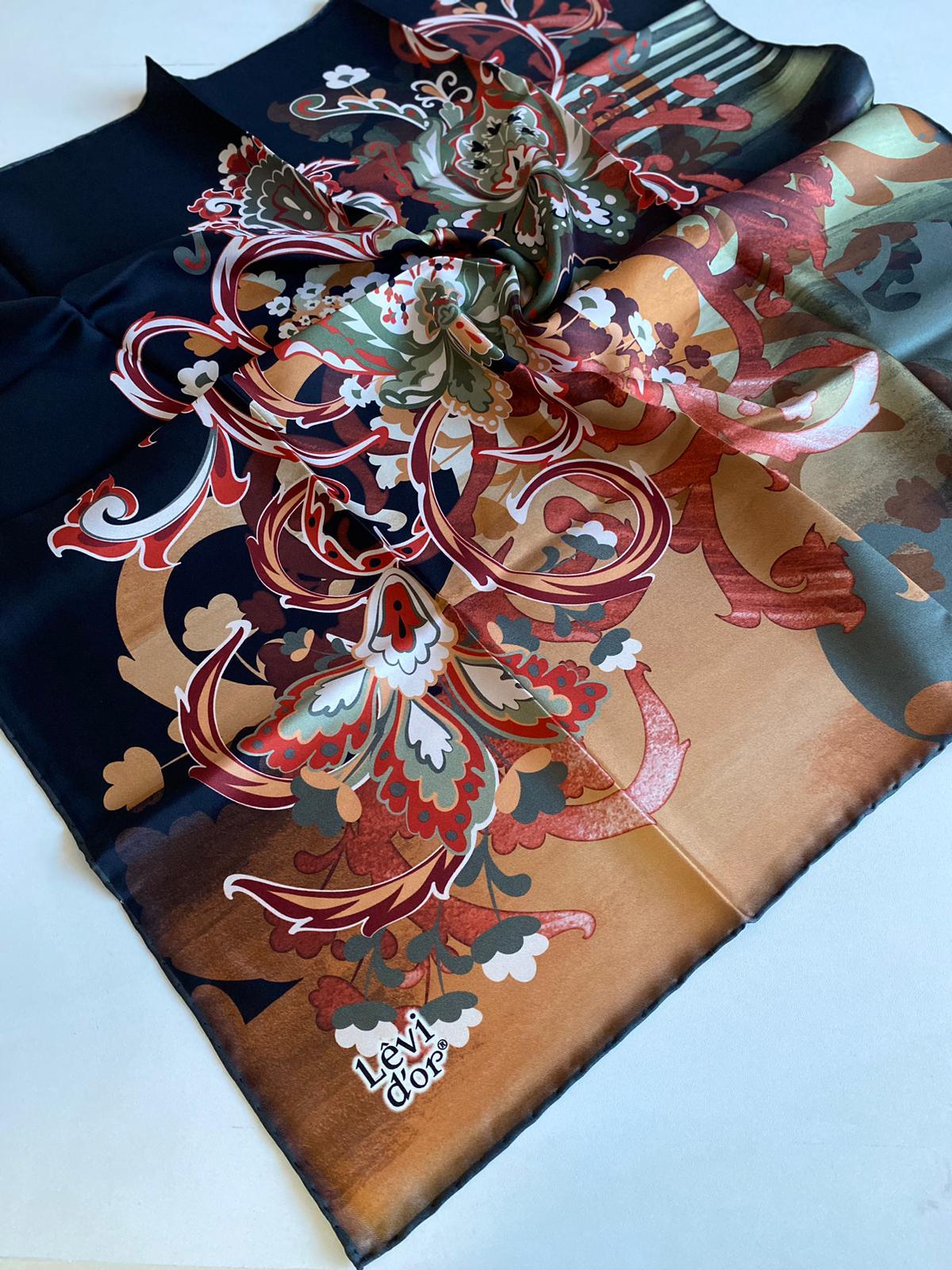 Levidor Tivil İpek Eşarp 40019 Turuncu Karışık Desen