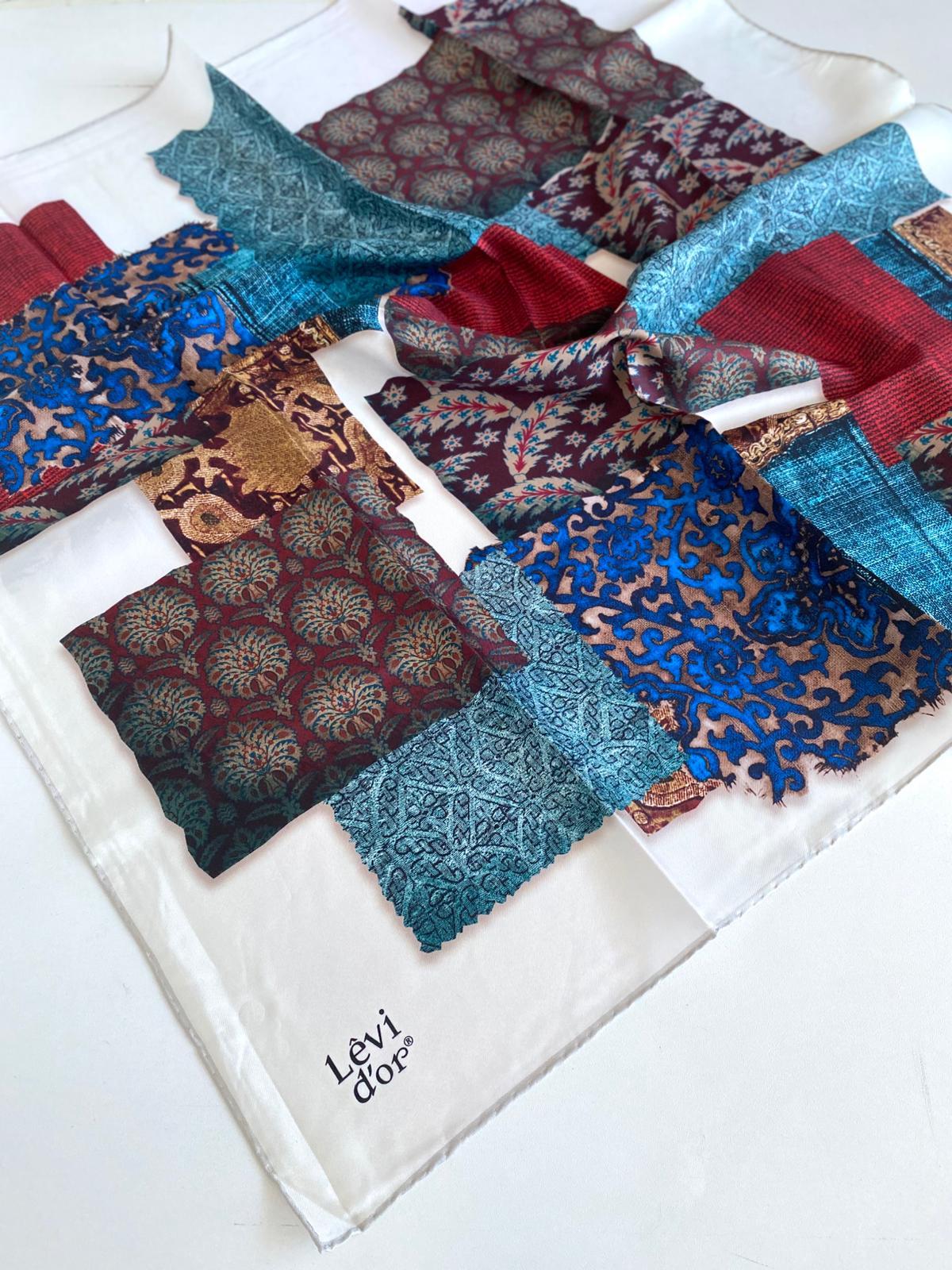 Levidor Tivil İpek Eşarp 46866 Beyaz Karışık Desen