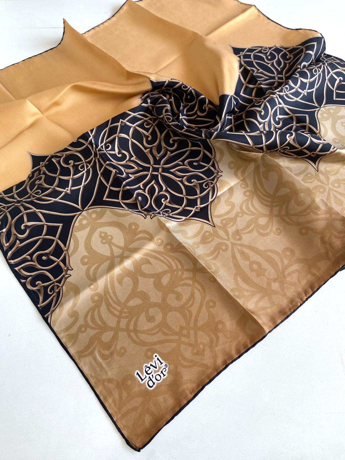 Lawilia Siyah Gold Çizgili Geometrik Desen Tivil İpek Eşarp 29011 – 25