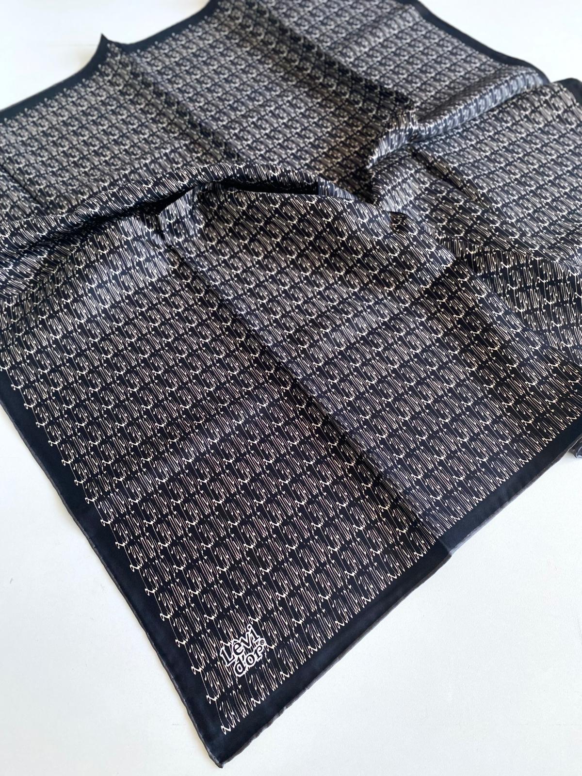 Levidor Tivil Saf İpek Eşarp 49351 Siyah Karışık Desen