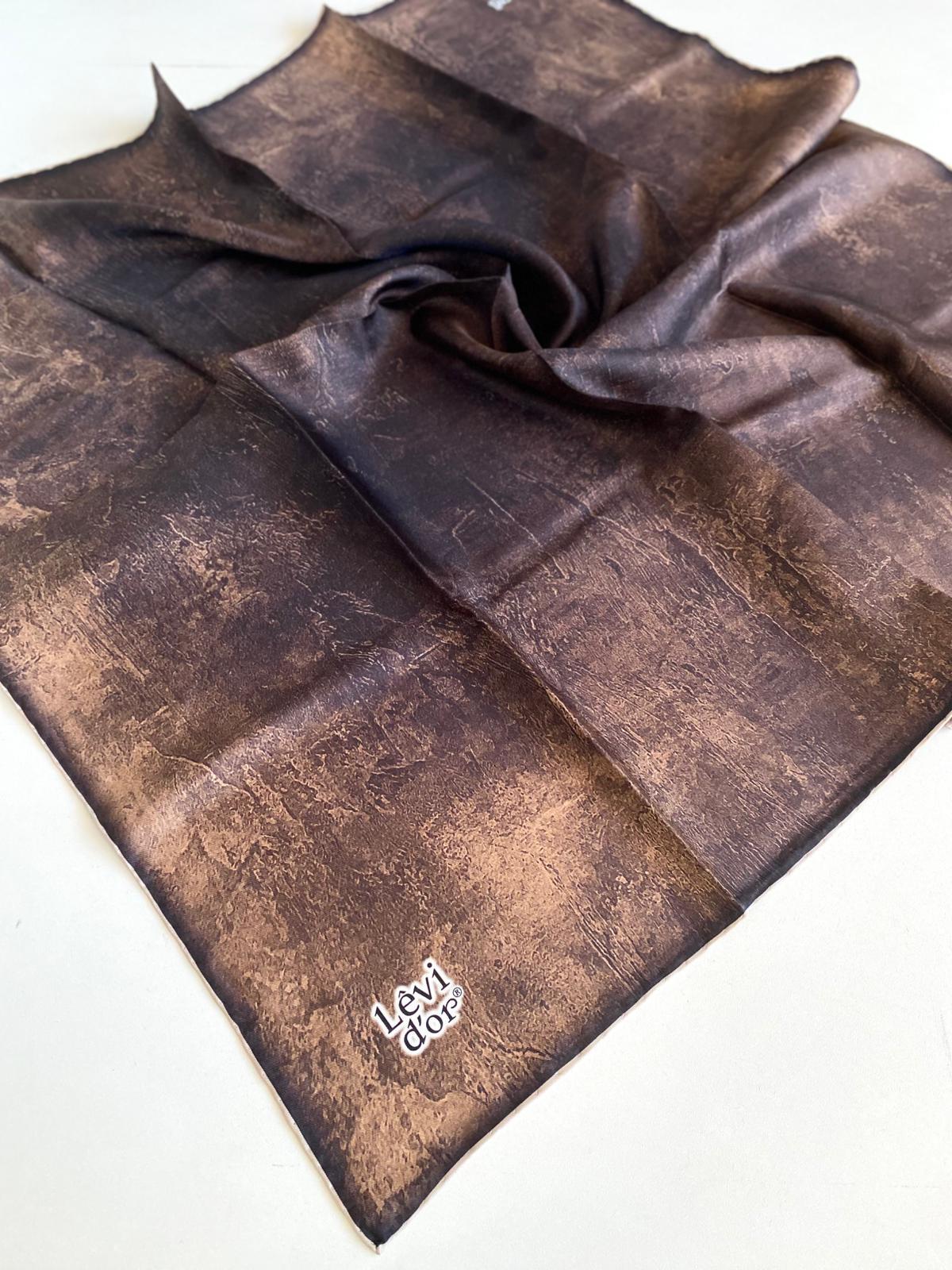 Levidor Tivil Saf İpek Eşarp 49382 Kahve Karışık Desen