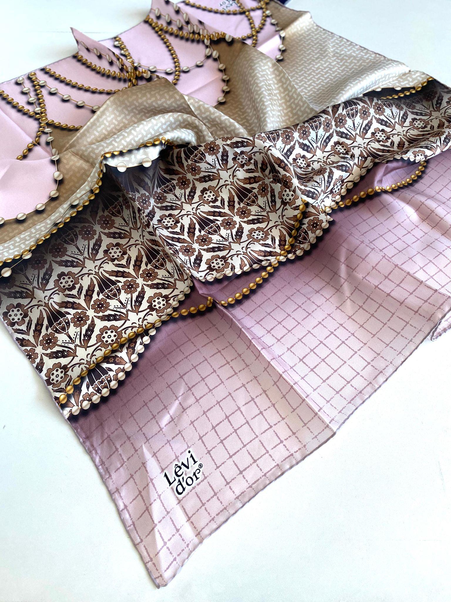 Levidor Tivil Saf İpek Eşarp 49384 Pudra Karışık Desen