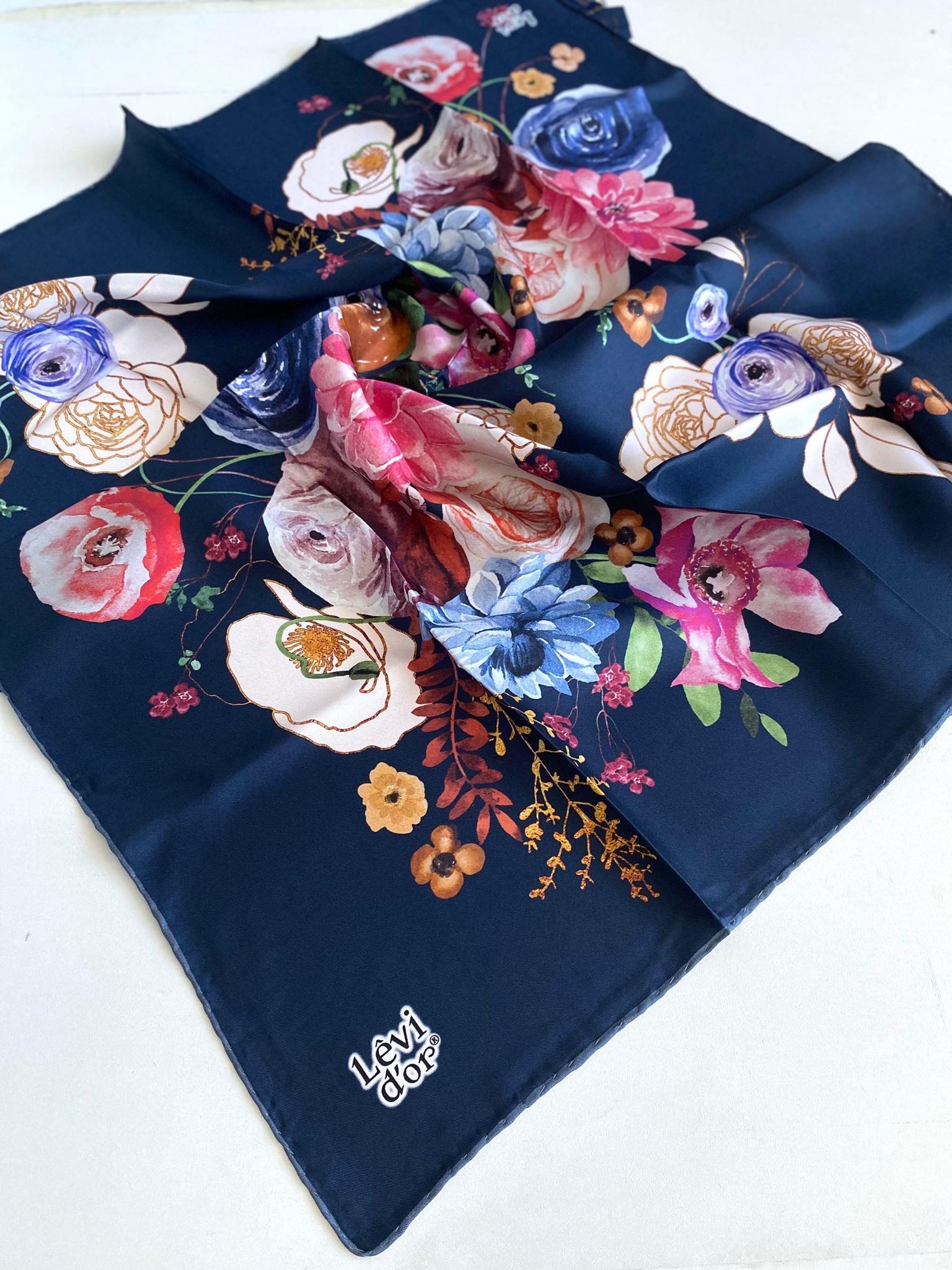 Levidor Tivil Saf İpek Eşarp 49401 Lacivert Karışık Desen