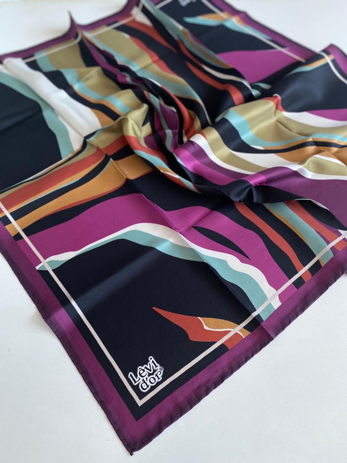 Levidor Tivil Saf İpek Eşarp 49429 Mor Karışık Desen