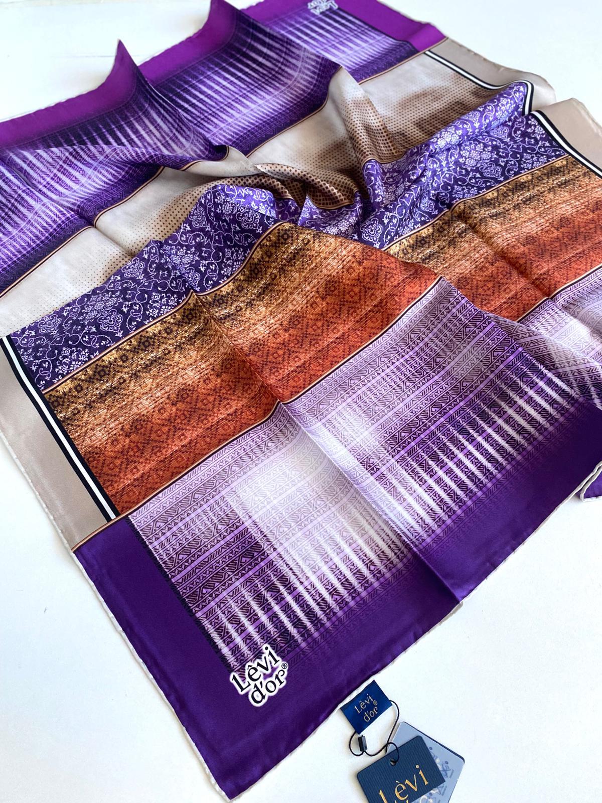 Levidor Tivil Saf İpek Eşarp 49465 Mor Karışık Desen