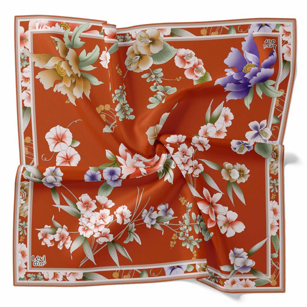 Levidor Turuncu Çiçek Desenli Tivil İpek Eşarp 26439 – 01
