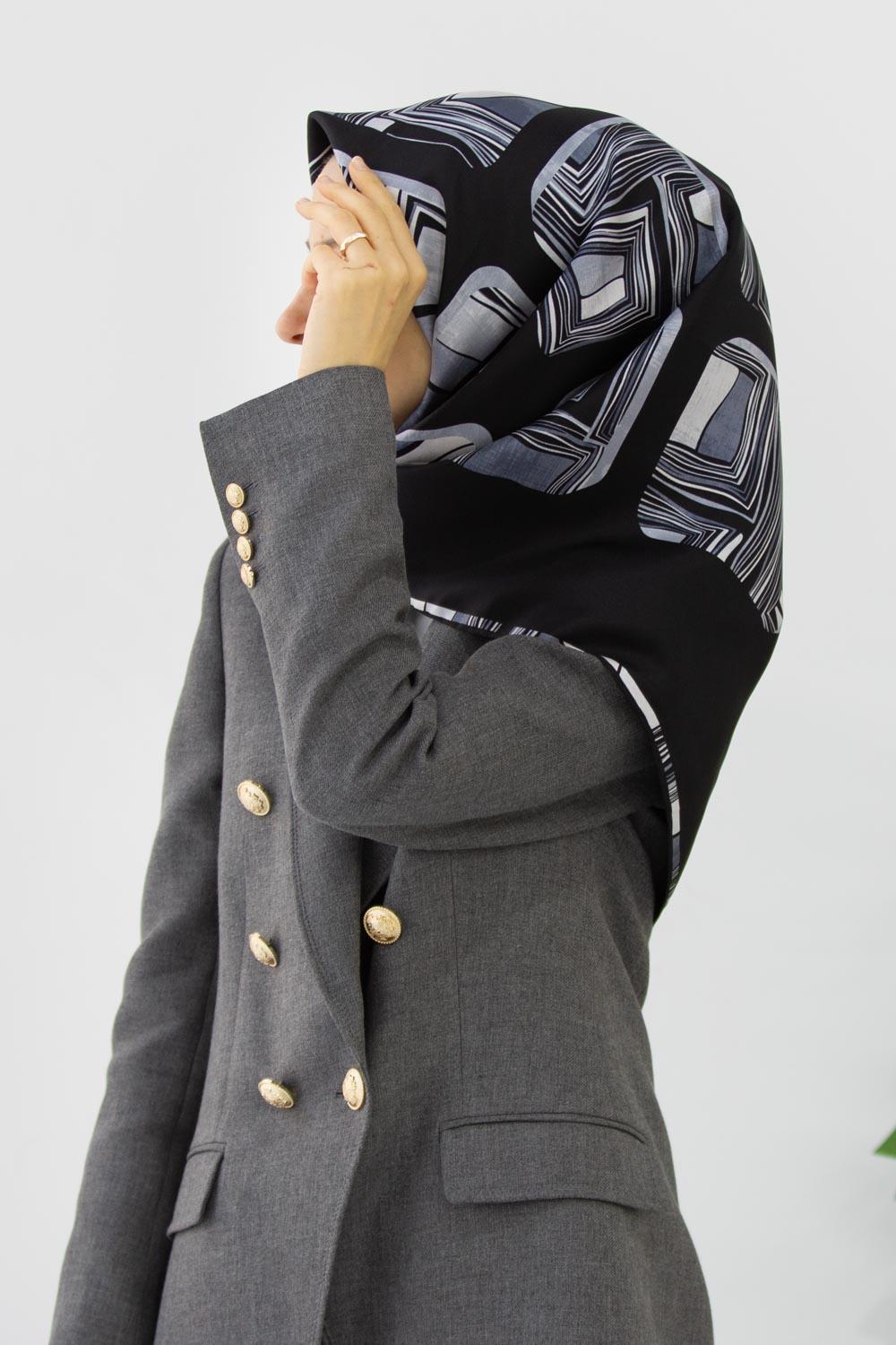 Vissona Siyah – Gri Dalga Desenli Tivil İpek Eşarp 51967 – 01 – 28