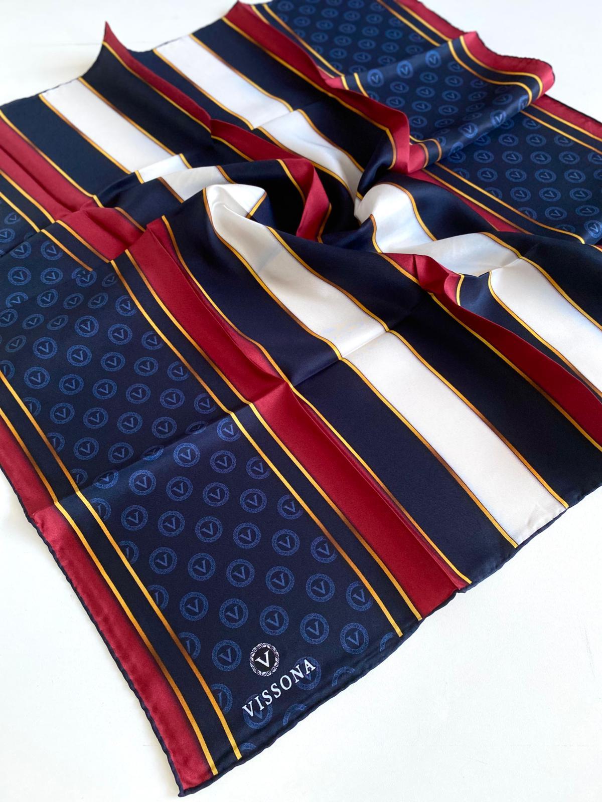 Vissona Tivil İpek Eşarp 10579 – 12 – 0033 – 0018 Lacivert Karışık Desen