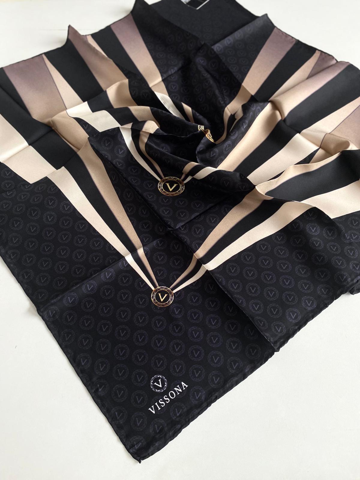 Vissona Tivil İpek Eşarp 17505 – 1 – 0001 – 0003 Siyah Karışık Desen