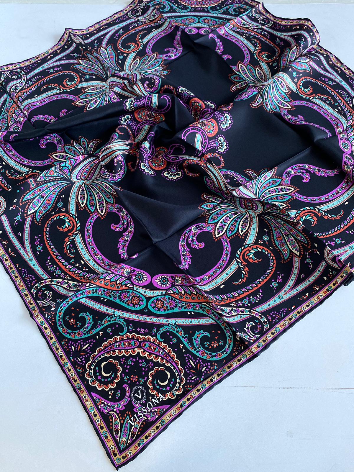 Levidor Tivil İpek Eşarp 35005 Siyah Yeşil Karışık Desen