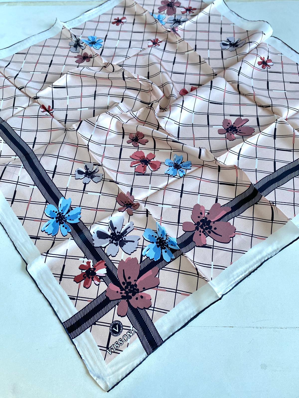 Vissona Tivil İpek Eşarp 50073 – 8 – 0019 – 0030 Pudra Karışık Desen