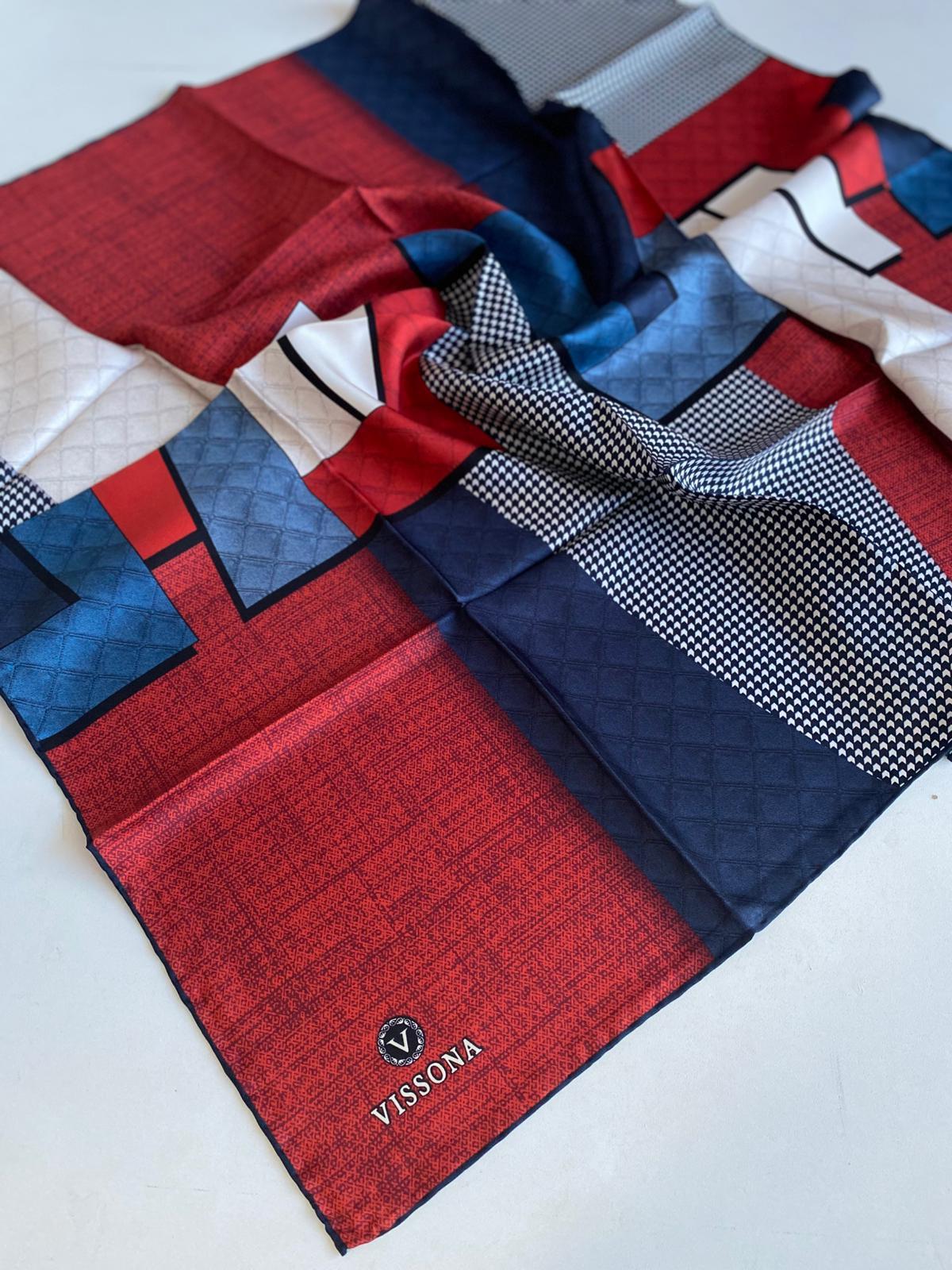 Vissona Tivil İpek Eşarp 50120 – 0017 – 0031 Kırmızı Karışık Desen