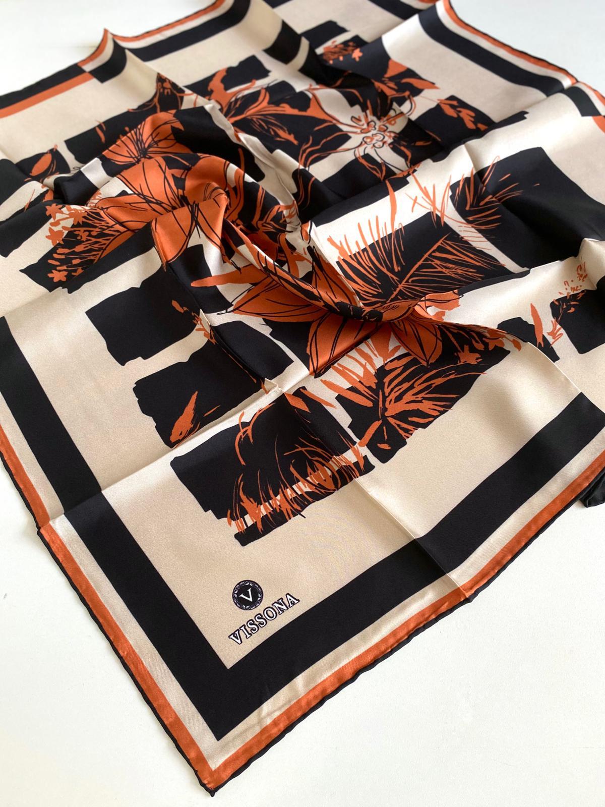 Vissona Tivil İpek Eşarp 51019 – 3 – 0004 – 0014 Siyah Karışık Desen