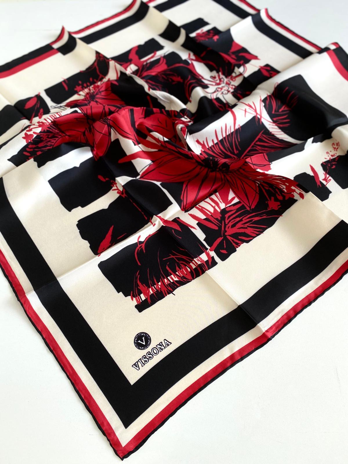 Vissona Tivil İpek Eşarp 51019 – 4 – 0017 – 0001 Kırmızı Karışık Desen