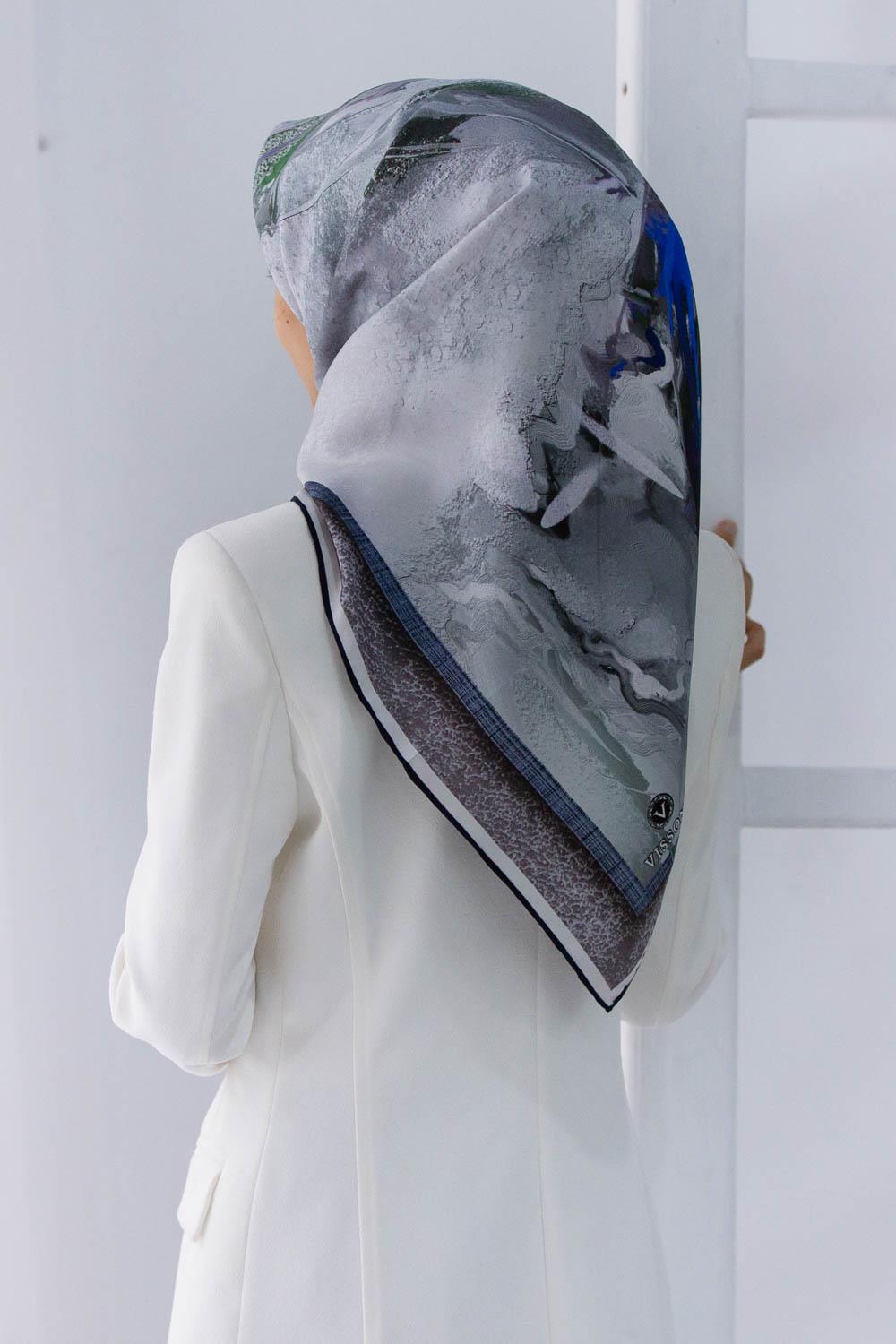 Vissona Tivil İpek Eşarp 51422 – 0036 – 0032 Gri Karışık Desen