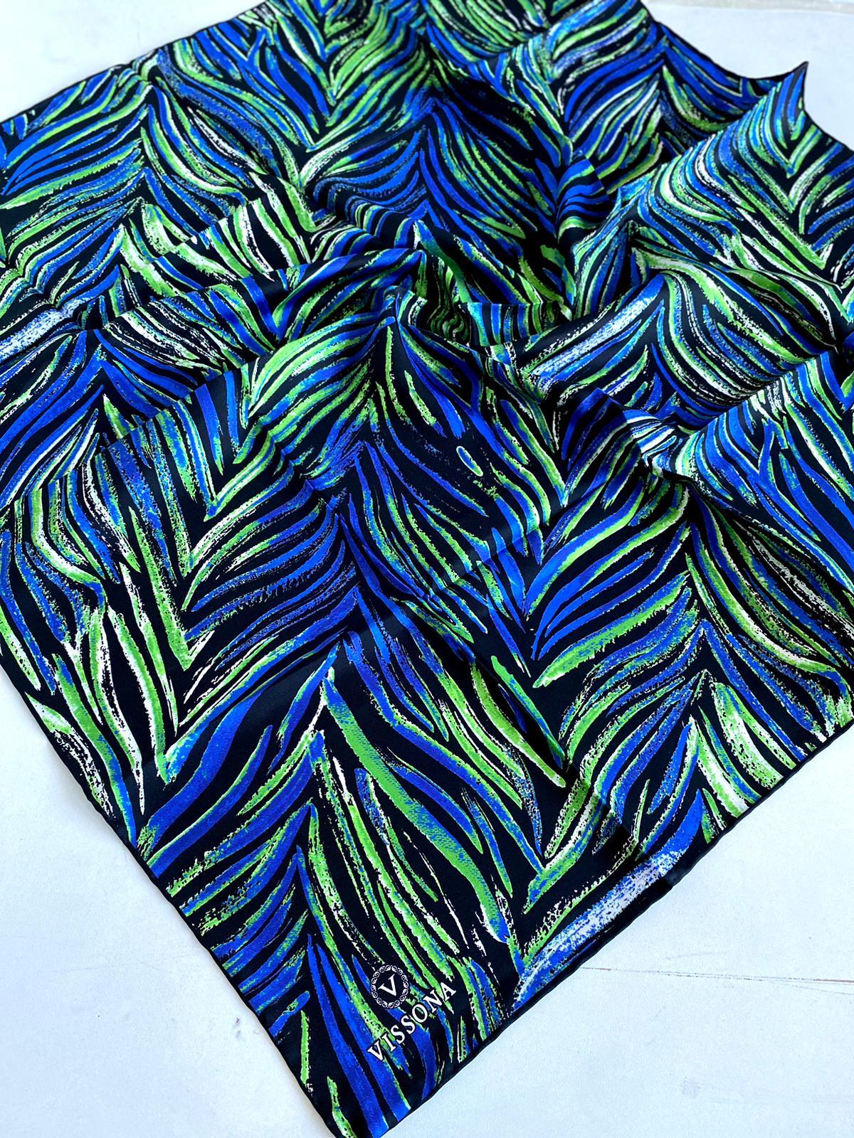 Lawilia Yeşil Çizgili Geometrik Desen Tivil İpek Eşarp 29011 – 20