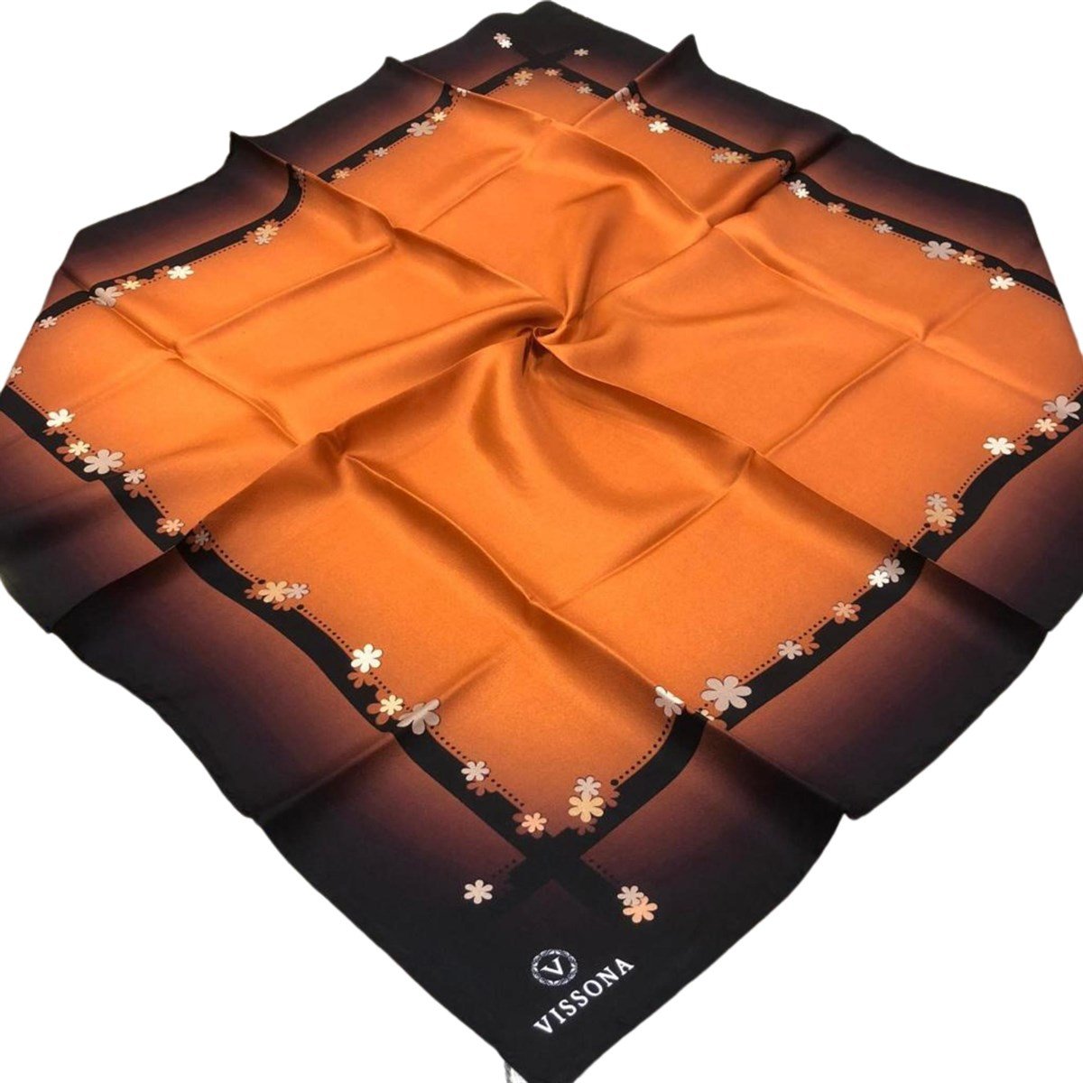 Vissona Tivil Turuncu Çiçek Çerçeve Desenli İpek Eşarp 50318 – 0014 – 0001